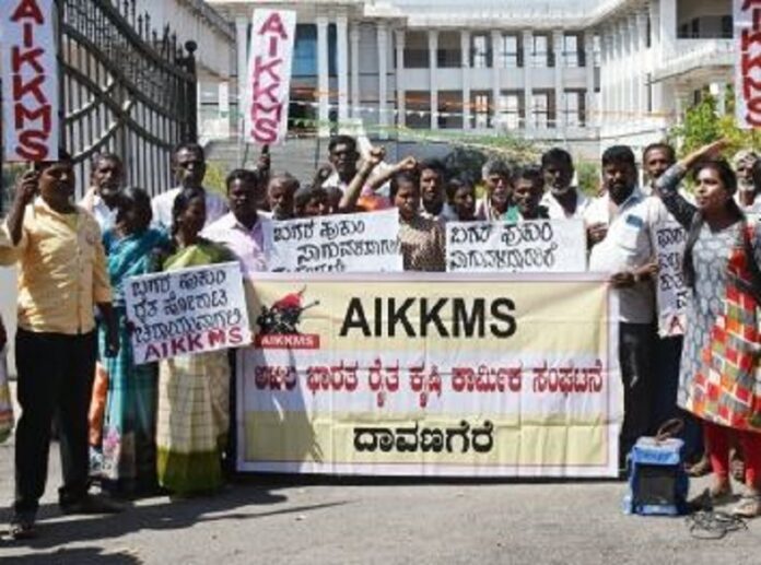 ದಾವಣಗೆರೆ ;ಜಿಲ್ಲೆಯ ರೈತ ಸಾಗುವಳಿದಾರರಿಗೆ ಬಗರ್ಹುಕುಂ ಹಕ್ಕುಪತ್ರ ವಿತರಿಸಬೇಕು,ಫಾರಂ ನಂ. 53 ರಲ್ಲಿ ಸಲ್ಲಿಸಿರುವ ಎಲ್ಲಾ ಅರ್ಜಿಗಳನ್ನು ತುರ್ತಾಗಿ ವಿಲೇವಾರಿ ಮಾಡಬೇಕೆಂದು ಒತ್ತಾಯಿಸಿ ಅ ಎಂಬುದು ಸೇರಿ ವಿವಿಧ ಬೇಡಿಕೆಗಳ ಈಡೇರಿಕೆಗೆ ಆಗ್ರಹಿಸಿ ಅಖಿಲ ಭಾರತ ರೈತ-ಕೃಷಿ ಕಾರ್ಮಿಕರ ಸಂಘಟನೆ (AIKKMS)ಜಿಲ್ಲಾ ಸಮಿತಿ ಪದಾಧಿಕಾರಿಗಳು ಸೋಮವಾರ ಜಿಲ್ಲಾಧಿಕಾರಿ ಕಚೇರಿ ಬಳಿ ಪ್ರತಿಭಟನೆ ನಡೆಸಿದರು.ಜಿಲ್ಲೆಯಲ್ಲಿ 70-80 ವರ್ಷದಿಂದ ಭೂಹೀನ ಬಡ ರೈತರು, ಕೃಷಿ ಕಾರ್ಮಿಕರು ಕಂದಾಯ ಹಾಗೂ ಅರಣ್ಯದ ಕುರುಚಲುಗಿಡ, ಕಲ್ಲು ಭೂಮಿ ಇರುವ ಪ್ರದೇಶದಲ್ಲಿ ಜೀವನೋಪಾಯಕ್ಕಾಗಿ ಸಾಗುವಳಿ ಮಾಡುತ್ತಿದ್ದು, ಕೈಗಾರಿಕೆಗಳು ನಿರೀಕ್ಷಿತ ಮಟ್ಟದಲ್ಲಿ ಅಭಿವೃದ್ಧಿ ಆಗದಿದ್ದರಿಂದ ಅನಿವಾರ್ಯವಾಗಿ ಜೀವನ ನಿರ್ವಹಣೆಗೆ ಸಾಗುವಳಿ ಮಾಡುತ್ತಿರುವುದು ಸರ್ಕಾರದ ಗಮನದಲ್ಲಿದ್ದು, ಉಳುಮೆಗೆ ಅವಕಾಶ ಕೊಟ್ಟಿರುವ ಸರ್ಕಾರಗಳು, ಹಕ್ಕುಪತ್ರ ನೀಡುತ್ತಿಲ್ಲ.ರೈತರಿಗೆ ಇದರಿಂದ ಬರುವ ಅಲ್ಪಸ್ವಲ್ಪ ವರಮಾನವೇ ಜೀವನಾಧಾರವಾಗಿದೆ.