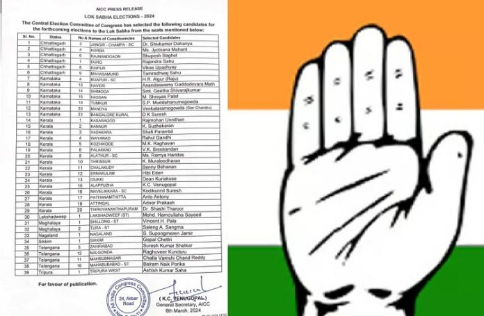 ಕರ್ನಾಟಕದ 7 ಕ್ಷೇತ್ರಗಳ ಕಾಂಗ್ರೆಸ್ ಅಭ್ಯರ್ಥಿಗಳ ಪಟ್ಟಿ
