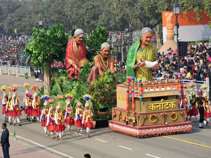 ಇನ್ನೂ ದೆಹಲಿಯಲ್ಲಿ ಜನವರಿ 26ರಂದು ನಡೆಯುವ ಗಣರಾಜ್ಯೋತ್ಸವ ಪಥ ಸಂಚಲನದಲ್ಲಿ ಕರ್ನಾಟಕ ರಾಜ್ಯದ ನಾರಿಶಕ್ತಿ ಹೆಸರಿನ ಸ್ತಬ್ಧಚಿತ್ರದ ತಾಲೀಮು ಭರದಿಂದ ಸಾಗಿತ್ತು. ರಾಜ್ಯದ ಮಾದರಿ ಮಹಿಳೆಯರಾದ ಸೂಲಗಿತ್ತಿ ನರಸಮ್ಮ, ತುಳಸೀ ಗೌಡ ಹಾಗೂ ಸಾಲು ಮರದ ತಿಮ್ಮಕ್ಕ ಅವರ ಪ್ರತಿಕೃತಿಗಳನ್ನು ಹೊಂದಿದ ಆಕರ್ಷಕ ಸ್ತಬ್ಧಚಿತ್ರವನ್ನು ಹೊತ್ತ ವಾಹನ ಸೋಮವಾರ ಕರ್ತವ್ಯಪಥ್ ಮಾರ್ಗದಲ್ಲಿ ಸಾಗುತ್ತಾ ಗಣರಾಜ್ಯೋತ್ಸವ ತಾಲೀಮಿನಲ್ಲಿ ಪಾಲ್ಗೊಂಡಿರುವ ಆಕರ್ಷಕ ಚಿತ್ರಗಳು ವಿಶ್ವಪ್ರಸಿದ್ಧ ಚನ್ನಪಟ್ಟಣದ ಗೊಂಬೆ, ಕಿನ್ನಾಳ ಗೊಂಬೆ, ಇಳಕಲ್ ಸೀರೆ, ಉಡುಪಿ ಸೀರೆ, ಮೈಸೂರು ಗಾಂಜೀಫ ಕಲೆಗಳೂ ಸೇರಿದಂತೆ ಜಿಐ ಟ್ಯಾಗ್ ಇರುವ ರಾಜ್ಯದ 16 ಕರಕುಶಲ ವಸ್ತುಗಳು(Handicrafts) ಅನಾವರಣಗೊಳ್ಳಲಿವೆ.