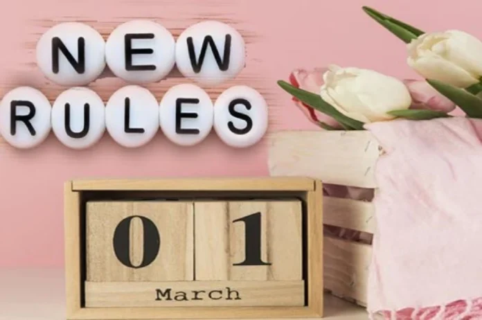 ನವದೆಹಲಿ : ಫೆಬ್ರವರಿ ಕೆಲವೇ ದಿನಗಳಲ್ಲಿ ಕೊನೆಗೊಳ್ಳಲಿದೆ. ಮಾರ್ಚ್ ತಿಂಗಳಿಂದ ಕೆಲ ಹೊಸ ನಿಯಮಗಳು ಚಾಲನೆಗೆ ಬರಲಿವೆ.ಕೆಲವು ನಮ್ಮ ಕೌಟುಂಬಿಕ ಬಜೆಟ್ಗೆ ಹೊರೆ ಆಗಬಹುದು, ಕೆಲ ಬದಲಾವಣೆಗಳು ನಮ್ಮ ಹೊರೆ ತಗ್ಗಿಸಲೂ ಬಹುದು. ನಿಮ್ಮ ಸಾಮಾಜಿಕ ಜೀವನದ ಮೇಲೂ ಪರಿಣಾಮ ಬೀರುವಂತಹ ಸಂಗತಿಯೂ ಇರಬಹುದು.ಬ್ಯಾಂಕುಗಳು ಸಾಲವನ್ನು ದುಬಾರಿಯಾಗಿಸಬಹುದು. ಹೊಸ ವೈಶಿಷ್ಟ್ಯಗಳನ್ನು ಸಾಮಾಜಿಕ ಮಾಧ್ಯಮ ಪ್ಲಾಟ್ ಫಾರ್ಮ್ ಗಳಲ್ಲಿಯೂ ನೋಡಬಹುದು. ರೈಲಿನ ವೇಳಾಪಟ್ಟಿಯಲ್ಲಿಯೂ ಬದಲಾವಣೆಯಾಗಬಹುದು. ಈ ಬದಲಾವಣೆಗಳು ಸಾಮಾನ್ಯ ಜನರ ಮೇಲೆ ನೇರ ಪರಿಣಾಮ ಬೀರುತ್ತವೆ.